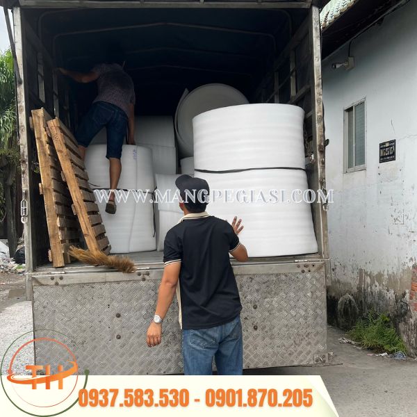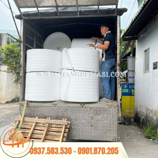 Giao 20 cuộn xốp foam trắng đến tận tay khách hàng.